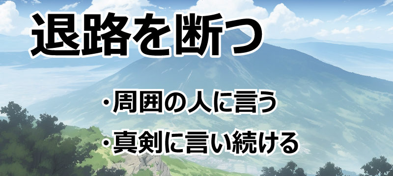 そこで、何をしたかというと、いろいろな人に言ったんです。「やりますよ! 挑戦しますよ!」と言い続けました。自分から退路を断つんですね。やらなきゃいけない状況に自分から追い込んでいくということです。ただし、退路を断つことが必ずしもすべての人にいいとは限らないですが…。